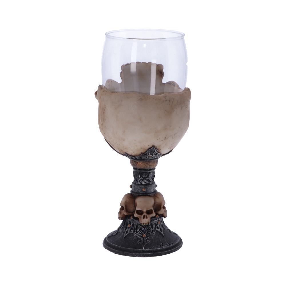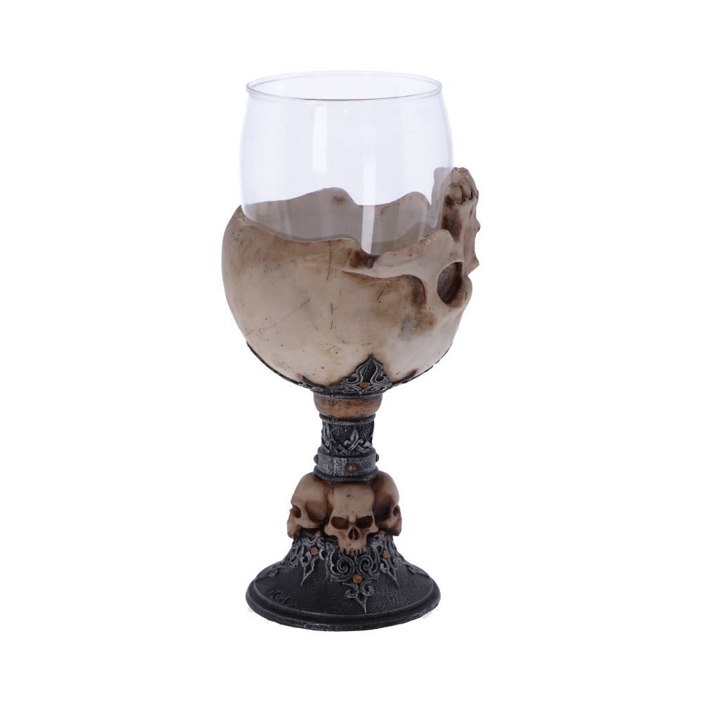 Черный бокал из подземного мира выполнен в виде черепа, который удерживает прозрачный сосуд для напитка. На ножке кубка находятся несколько черепов поменьше, богато украшенные замысловатыми узорами с бронзовыми деталями. 17 см. Этот кубок был создан талантливыми дизайнерами бренда Nemesis Now. Отлитый из тончайшего полистоуна, а затем тщательно расписанный вручную, этот кубок поставляется со съемной вставкой из нержавеющей стали для удобства очистки. Предназначен для использования по прямому назначению, а так же в декоративных целях. Мыть только вручную. Объем бокала - 200 мл.
