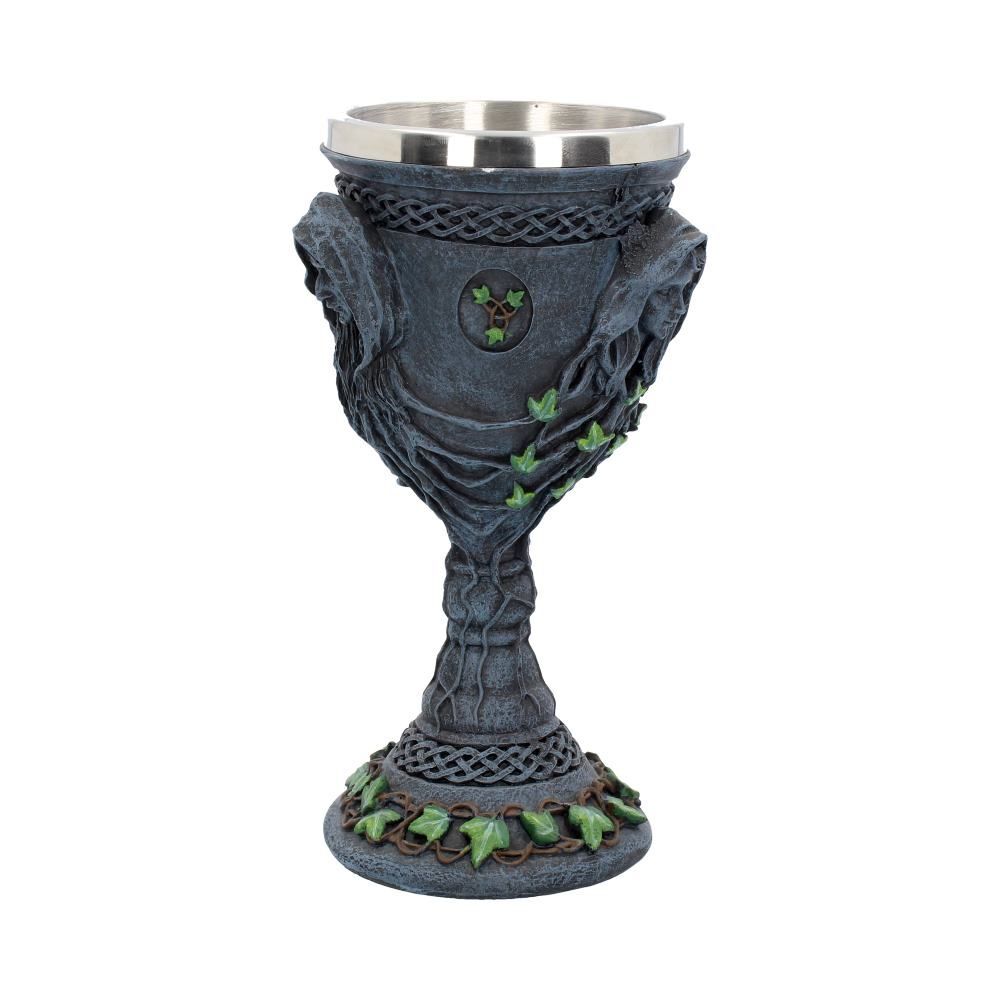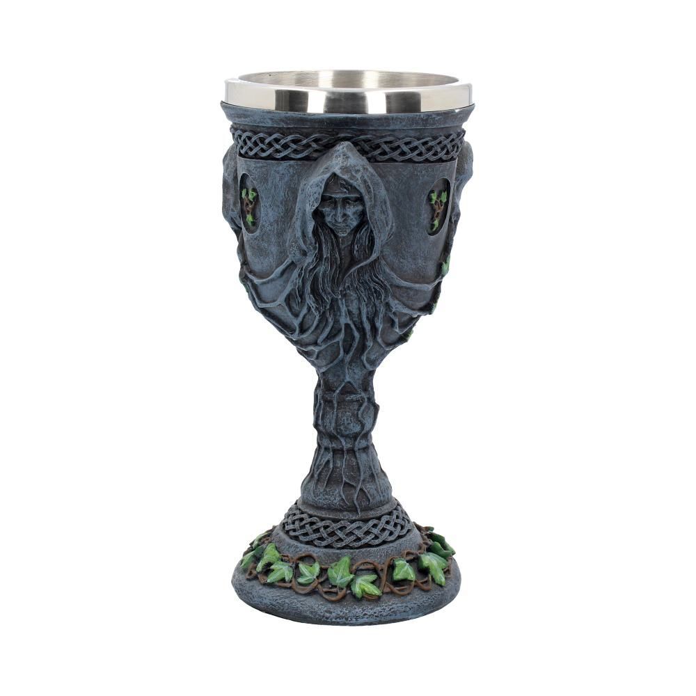 Поднимите тост за Триединую богиню Луны с этим кубком "Мать, Дева и Старица" из готической коллекции сувениров Nemesis Now. Лица Девы, Матери и Старицы расположены с разных сторон кубка, соединенные замысловатой сетью корней, покрытых плющом. Эта листва переходит на ножку и даже на основание, которое также украшено кельтским узором. Отлитый из полистоуна высочайшего качества и раскрашенный вручную, этот кубок также имеет съемную вставку из нержавеющей стали, которая облегчает чистку. Предназначен для использования по прямому назначению, а так же в декоративных целях. Мыть только вручную. Объем бокала - 200 мл. 21 см.
