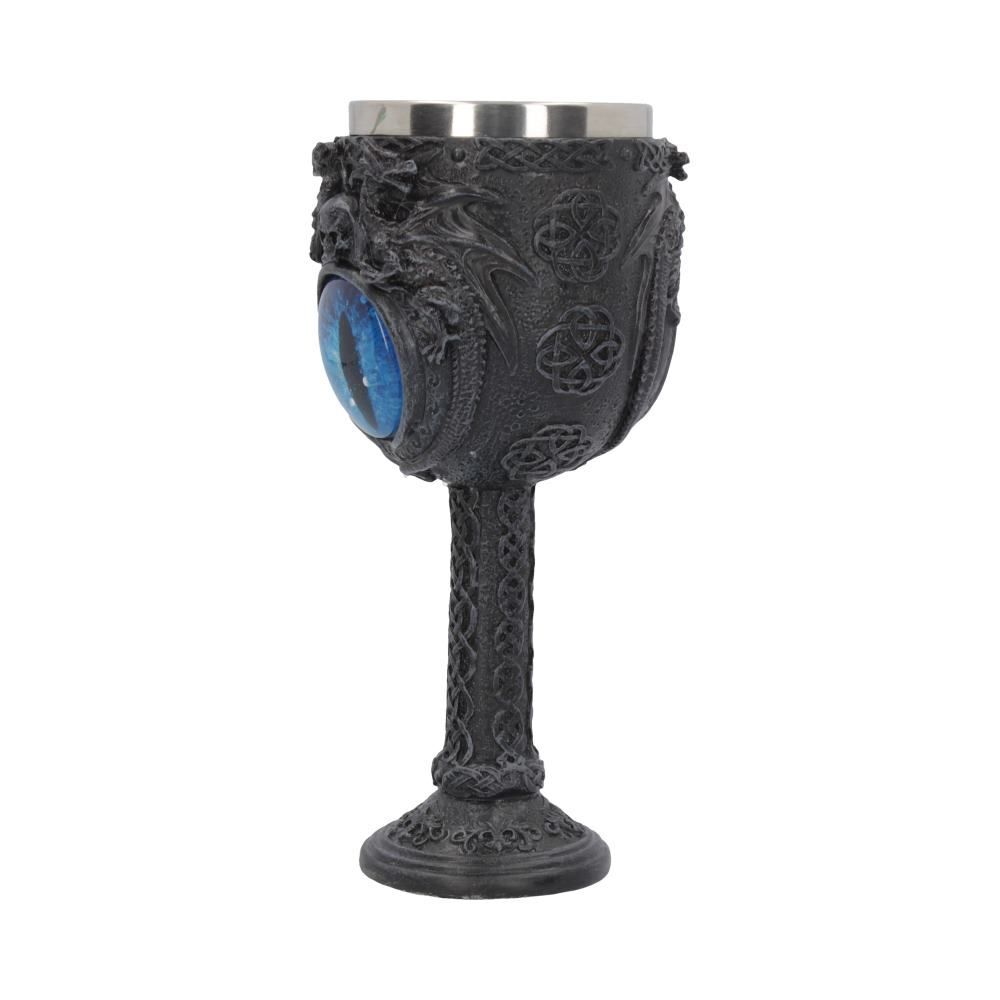 Этот кубок был создан талантливыми дизайнерами бренда Nemesis Now. Отлитый из тончайшего полистоуна, а затем тщательно расписанный вручную, этот кубок поставляется со съемной вставкой из нержавеющей стали для удобства очистки. Предназначен для использования по прямому назначению, а так же в декоративных целях. Мыть только вручную. Объем бокала - 200 мл. Этот готический кубок идеально подходит для любого поклонника фэнтези. В центре расположен зрачек рептилии. А сам кубок украшен замысловатыми узорами. Несмотря на относительно простой дизайн, чаша украшена кельтскими узорами. 24 см.