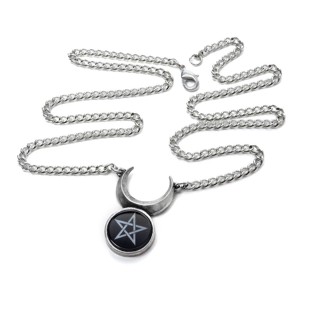 Мужской аналог и консорт женской Триединой Богини (образующей два основных викканских божества), контролирующий природу, дикую местность и сексуальность. Син, первоначальное месопотамское божество луны и "отец богов", был ранним прототипом Кернунна, языческого/кельтского рогатого бога. Винтажная подвеска из английского пьютера с изображением полумесяца и диска из черного оникса, на котором выгравирована викканская пентаграмма. Размер цепи (приблизительно): 21-дюйм (54 см). (Пожалуйста, обратите внимание, что размеры украшений на шею указаны без учета креплений). Крепление и упаковка: подвеска на разъемной цепочке с застежкой (не содержит никеля). Упаковано в фирменный пакет Alchemy, включая гарантию Alchemy и инструкции по уходу. Материалы и происхождение: разработано и изготовлено вручную в Англии с использованием тонкого английского пьютера высшего качества.
