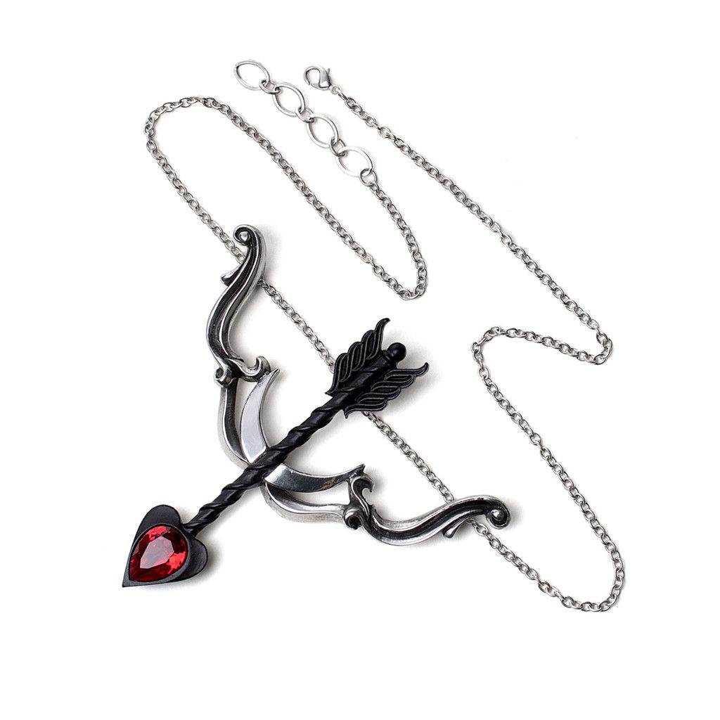 Подвеска - Желай Меня! Сын богов в классической мифологии Венеры и Марса, Купидон - бог пылкой страсти. Чувственная любовь захлестнет любую жертву его метко пущенной стрелой. Любовь может внезапно вспыхнуть, пока вы носите это великолепное украшение! Проявляйте любовь, носите любовь, получайте любовь! Элегантное и поразительное ожерелье в форме лука и стрелы купидона. Отполированный вручную лук в стиле барокко с полумесяцем и контрастной стрелой из черного пьютера. Наконечник стрелы в форме сердца инкрустирован самым красивым из австрийских кристаллов - красной сиамской слезой. Подвеска упакована в фирменный пакет Alchemy, включая гарантию Alchemy и инструкции по уходу. Разработана и изготовлена вручную в Англии из английского пьютера.