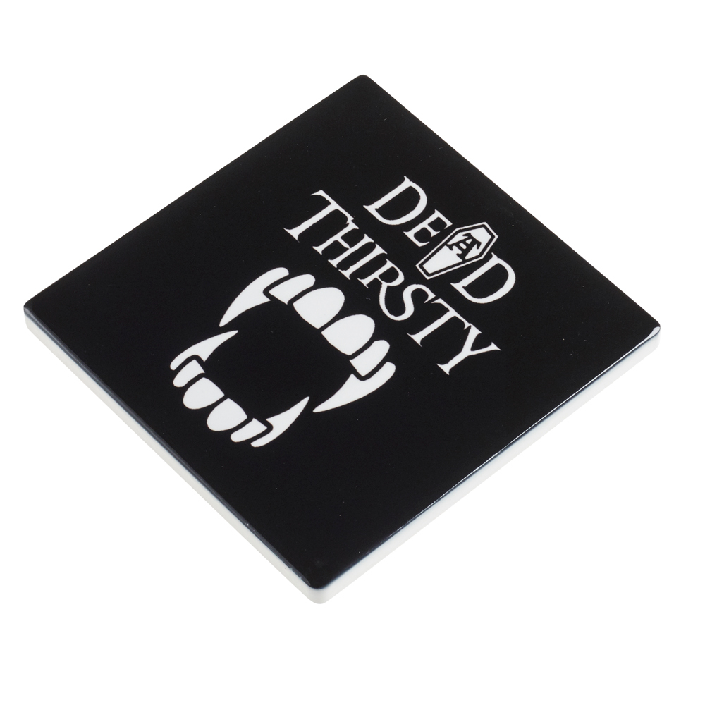 Это мрачно-веселая подставка с изображением зубов вампира и надписью "Смертельная жажда" Также доступна новая кружка с тем же дизайном . Существует 17 уникальных подставок с дизайном Alchemy, почему бы не собрать их все! Эта подставка разработана компанией Alchemy и является частью новой коллекции высококачественной керамической посуды для дома. Вес и размеры (приблизительно): 9,3х9,3х0,8 см. Вес: 102 г. Керамическая подставка с нескользящей пробковой подложкой, украшенная оригинальной иллюстрацией Alchemy. Термостойкая и устойчивая к царапинам.