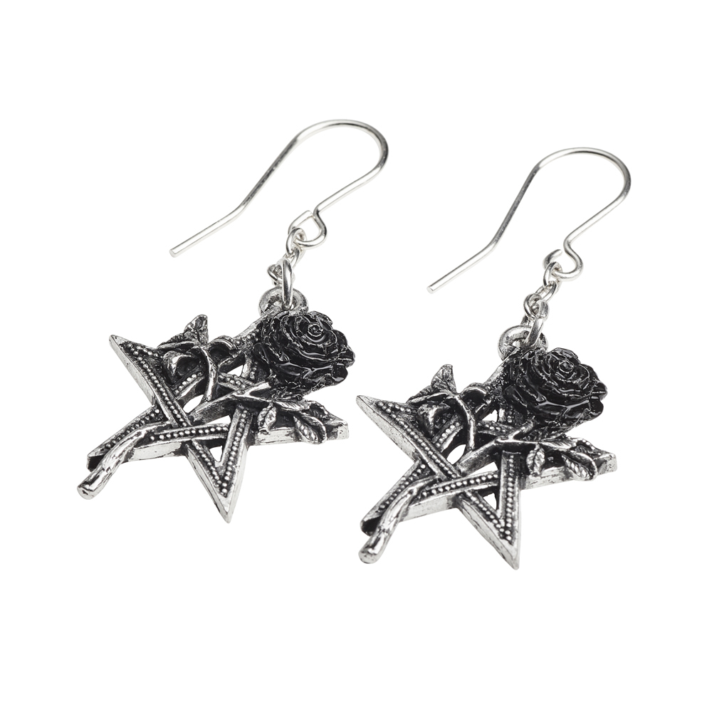 Дизайн сережек включает в себя пентаграмму, которая является символом пятого элемента, духа и «дыхания жизни». Она страстно переплетена с черной лепестковой розой, символизирующей верную любовь.