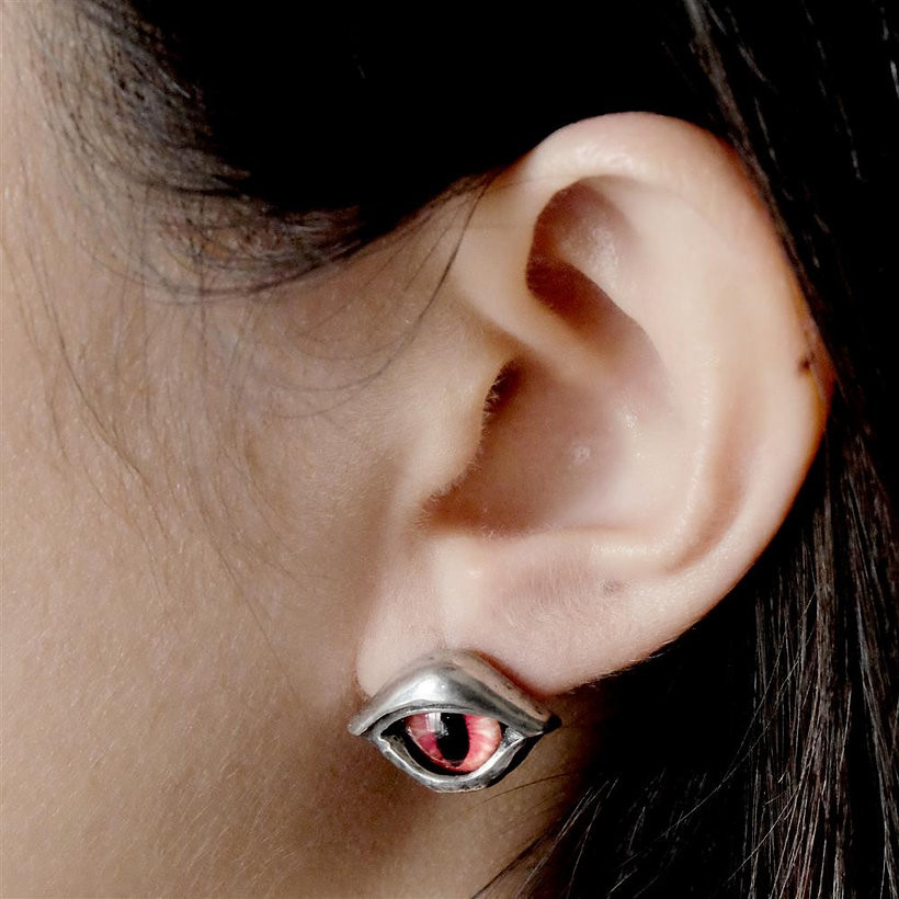 Дизайн сережек выполнен в форме глаз с красной и черной радужкой. Это создает эффект демонических глаз, которые смотрят прямо в душу.