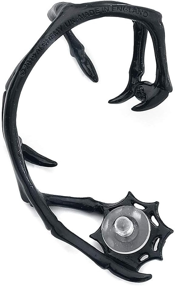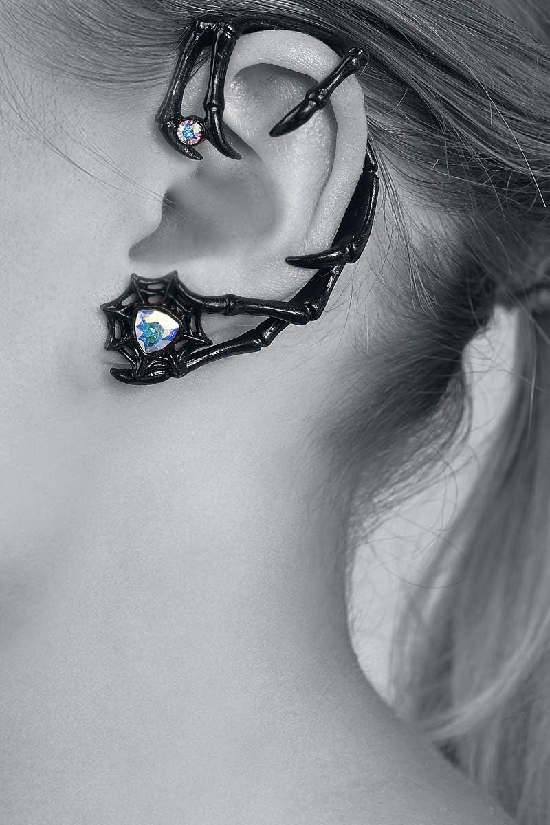 Длинная, тонкая, черная лапа с когтями, принадлежащая кому? Фантастически умному пауку или какому-то невероятному существу из потусторонних миров, упрямо преследующему свою добычу? Обратите внимание на это бесподобное украшение! Изделие украшено двумя кристаллами Swarovski, один находится в верхней части серьги, а второй - в маленькой паутине в нижней части, где находится замочек. Крепится к верхней части уха и прикрепляется к мочке с помощью замочка. Вес и размеры: H: 64 мм (2,52") W: 36 мм (1,42") D: 16 мм (0,63") Вес: 19 г (0,67 унции).