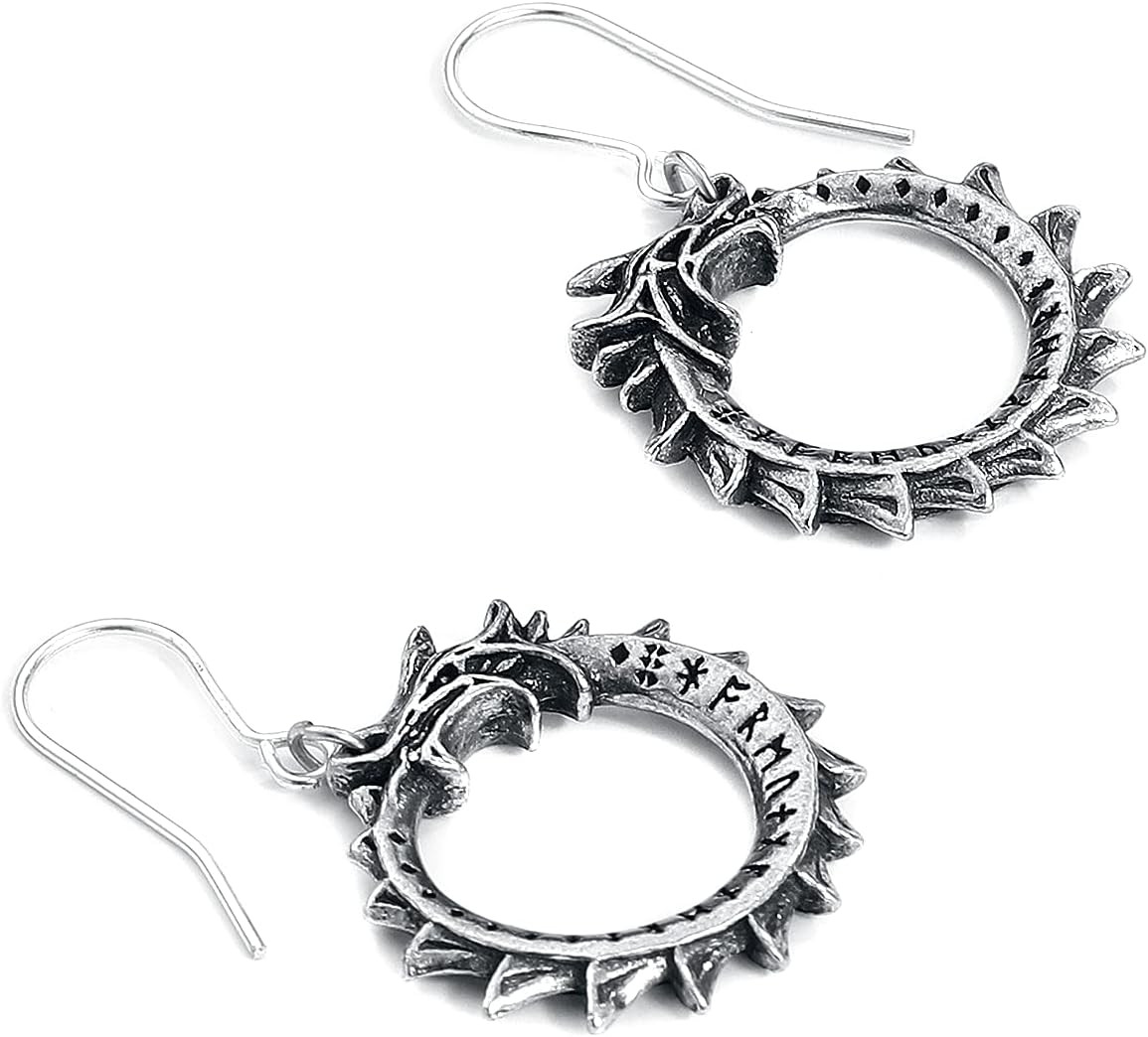 Серьги-подвески Йормунганд от Alchemy Gothic – это сдержанные талисманы-уроборосы, эмблемы целостности, сформированные из легендарной норвежской змеи Мидгард.