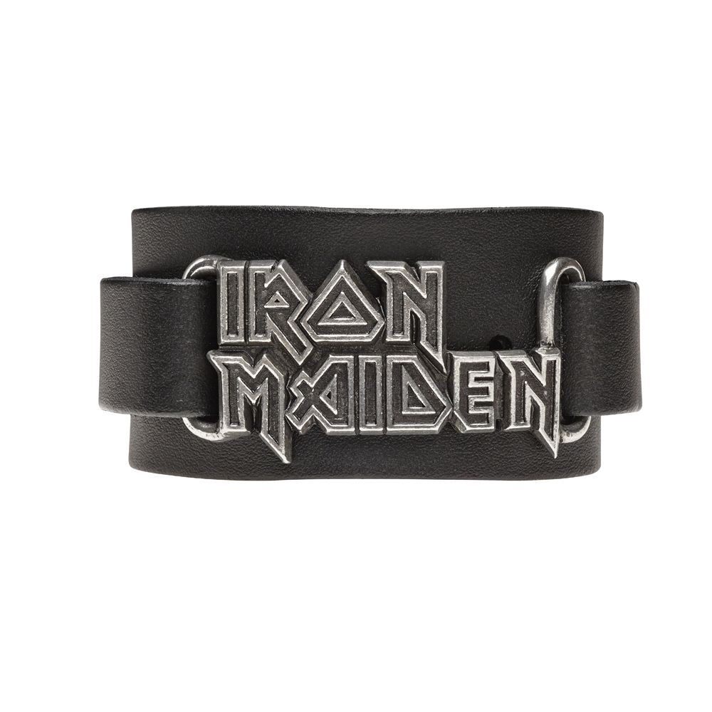 Браслет из черной кожи шириной 1 ½ дюйма (38 мм) с литой старинной английской оловянной соединительной пластиной с логотипом Iron Maiden; регулируемая длина, застежка с пряжкой. Изделия в индивидуальной фирменной упаковке, включающей гарантию, фирменную бирку "Сваровски" и инструкцию по уходу. Разработаны и изготовлены вручную в Англии с использованием *Swarovski элементов и английского пьютера. Цвет кристаллов зависит от наличия и может отличаться от показанного изображения.