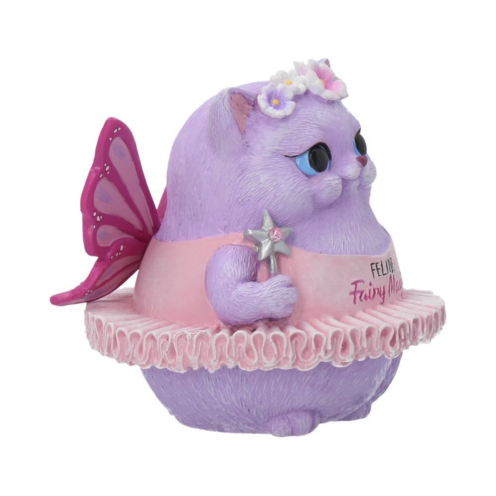 Очаровательная фигурки котика, разработаная Nemesis Now как часть коллекции Snapcats, отлита из высококачественного полистоуна и раскрашена вручную. Волшебная кошка-фея имеет стильную пару крыльев цвета фуксии, эта причудливая лавандовая кошка носит в волосах 4 из белых цветов. Ее юбочка бледно-розового цвета вокруг тела содержит надпись "Feline Fairy Magic". В правой лапе она держит волшебную палочку и смотрит на вас широко раскрытыми глазами. 8 см.