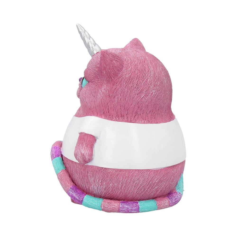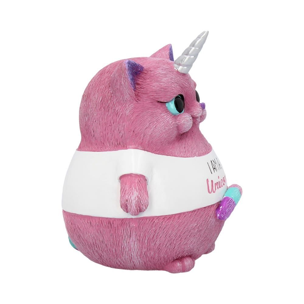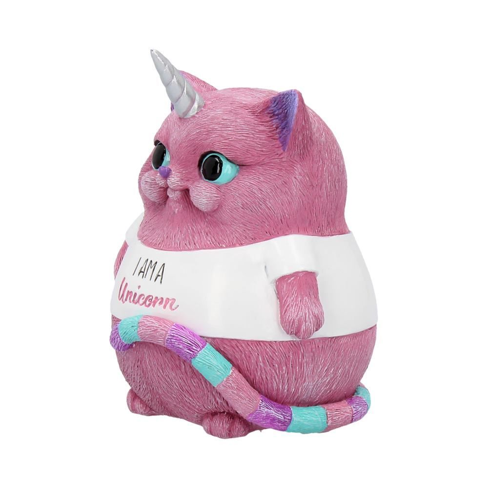 Очаровательная фигурки котика, разработаная Nemesis Now как часть коллекции Snapcats, отлита из высококачественного полистоуна и раскрашена вручную. Я - кот-единорог. Сидящая, эта розовая кошка смотрит на вас широко раскрытыми глазами. На лбу у нее торчит один спиралевидный рог. Полосатый хвост закручивается спереди под белой футболкой с надписью Я - единорог. 8 см.