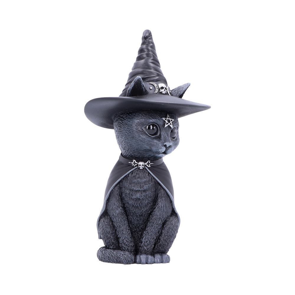 От завораживающего воображение разума мастеров команды дизайнеров Nemesis Now пришла кошка-ведьма Пурра. Это странное существо представляет собой союз добра и зла. Заглянув в ее черные глаза, вы поймете, что все не так, как кажется, внутри живет тьма. Кажется, что в кошку вселился дух ведьмы, его олицетворяют большая остроконечная шляпа и гладкая накидка. Кошка украшена витиеватыми серебряными деталями и оккультной символикой. Отлитая из высококачественного полистоуна и тщательно раскрашенная вручную, эта фигурка наверняка окажется самым милым подарком, который вы когда-либо видели. 13 см.