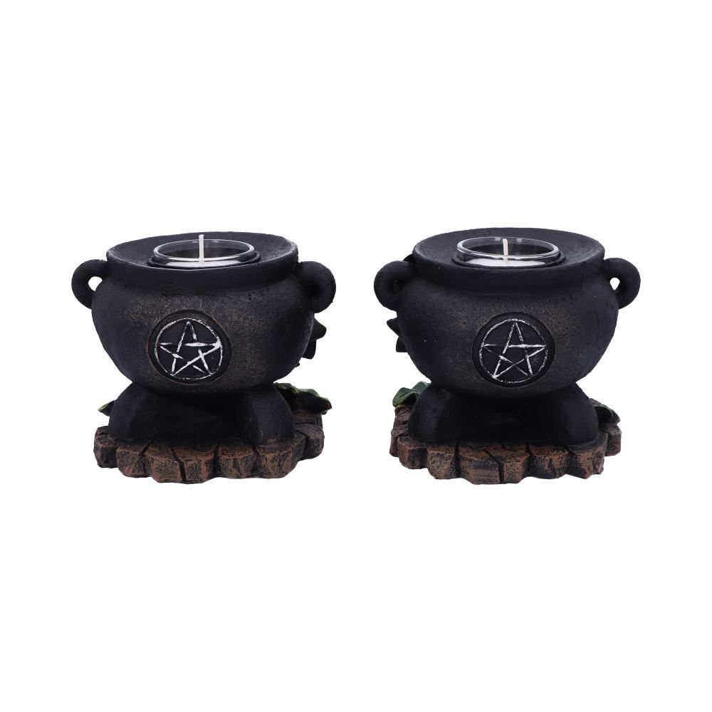 Этот набор из двух подставок для свечей, украшенных плющом, от мастеров мрачных дел Nemesis Now - мечта любого любителя оккультизма. Эти котелки с небольшим пространством в центре для размещения чайной свечи имеют черную матовую отделку и украшены серебряной пентаграммой в центре, окруженной лианами зеленого плюща. Отлитые из тончайшей смолы, эти изделия станут прекрасным дополнением к любому темному алтарю. 11см.