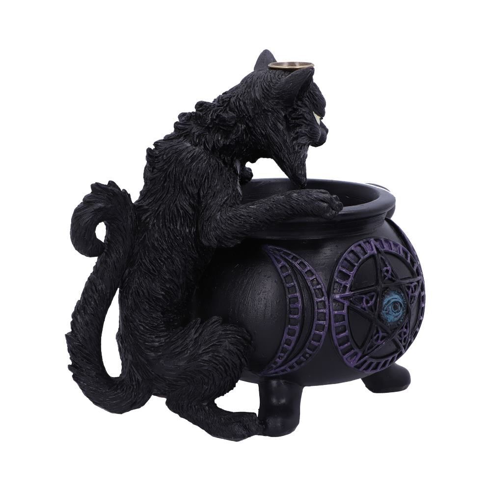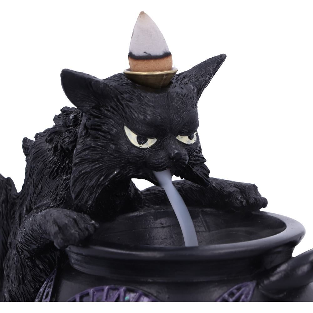 Этот кот выглядит совершенно невозмутимым! Его шерсть взъерошена, он сгорбился над котлом своей хозяйки, размышляя о жизни. Быть фамильяром ведьмы - тяжелая работа, и Злоба, конечно же, это демонстрирует! На его голове можно установить конус для благовоний с вашим любимым ароматом. Благодаря обратному потоку дыма будет создаваться вид что дым исходит из пасти кота прямо в котел. Отлитая из тончайшей смолы и тщательно раскрашенная вручную, эта фигурка станет идеальным подарком для любой ведьмы, нуждающейся в компаньоне!