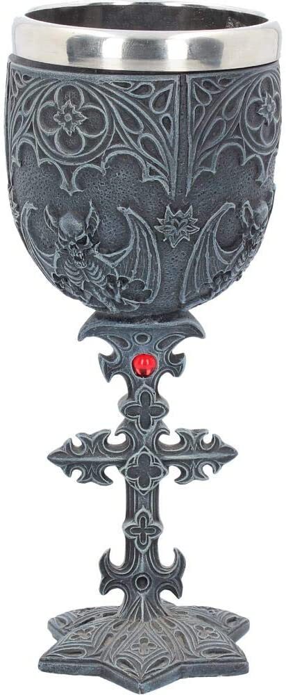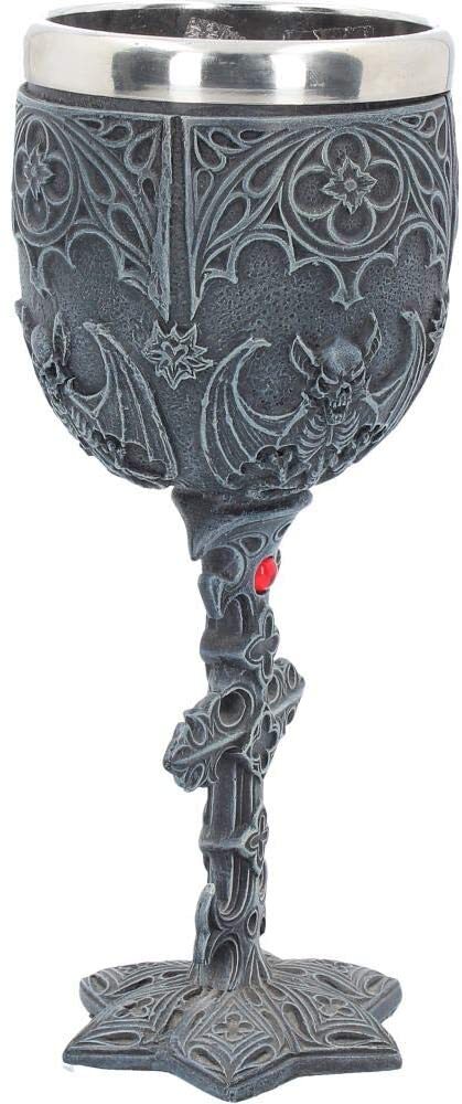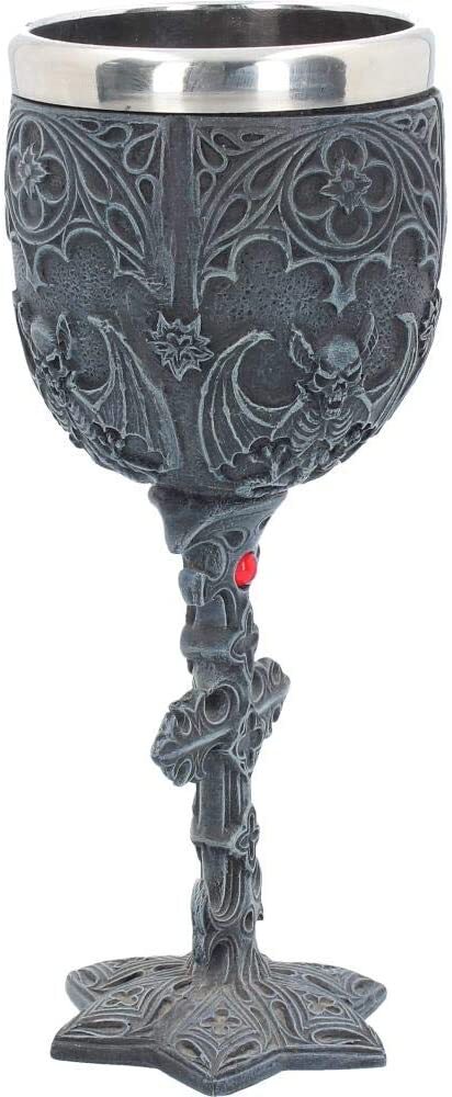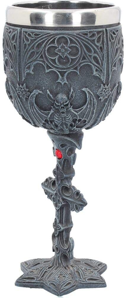 Этот готический кубок был создан для коллекции альтернативной сувенирной посуды бренда Nemesis Now. Кубок украшен крупными скелетами летучих мышей-вампиров под арками в стиле собора. Ножка образована витиеватым крестом, узоры которого переходят на основание. Маленькая красная жемчужина помещена прямо под чашей, чтобы добавить нотку романтики. Отлитый из тончайшей смолы, а затем тщательно раскрашенный вручную, этот кубок идеально подходит для тех, кто увлекается кровососущими монстрами. 18 см. 0,3 кг.
