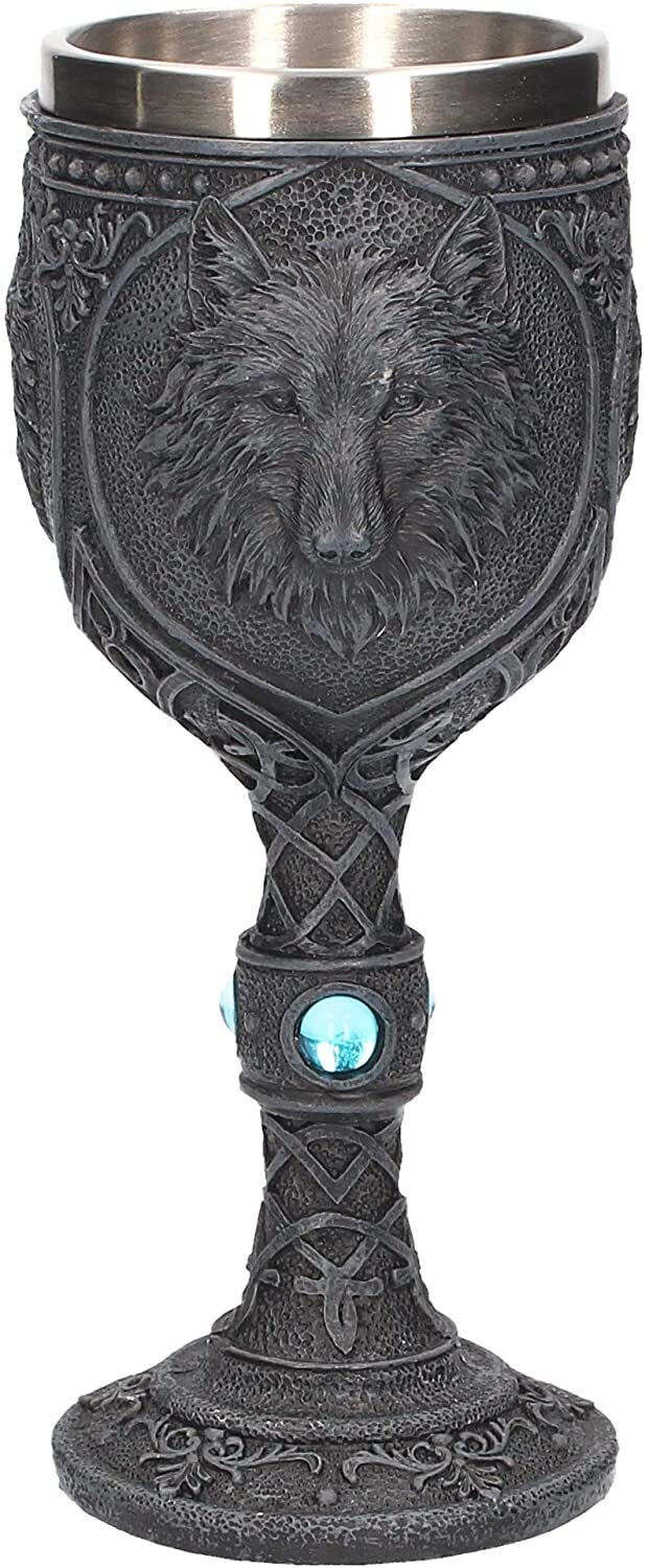 Этот кубок Фантазийный волк отлит из тончайшего полистоуна, а затем с любовью расписан вручную. Корпус этого изделия полностью черный и покрыт повторяющимися узорами кельтских узлов. По бокам узор прерывается большим овалом, в центре которого изображена большая волчья голова, смотрящая пронзительными глазами и обладающая сверхъестественной мудростью. Со съемной вставкой из нержавеющей стали, облегчающей чистку, этот кубок идеально подходит для тех, кто чувствует зов дикой природы с каждым глотком. Предназначен для использования по прямому назначению, а так же в декоративных целях. Мыть только вручную. Объем бокала - 200 мл. 19 см.