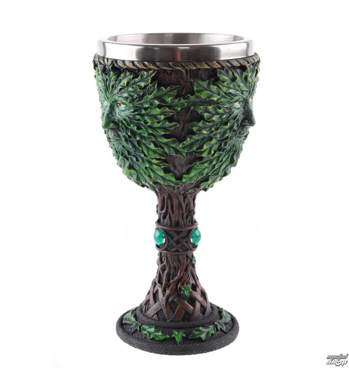 Этот кубок был создан талантливыми дизайнерами бренда Nemesis Now. Отлитый из тончайшего полистоуна, а затем тщательно расписанный вручную, этот кубок поставляется со съемной вставкой из нержавеющей стали для удобства очистки. Предназначен для использования по прямому назначению, а так же в декоративных целях. Мыть только вручную. Объем бокала - 200 мл. Поднимите тост с этой уникальной чашей с изображением древесного духа. Лицо дикого леса, грозного зеленого человека, украшает этот кубок. Глаза устремлены на вас, а древесные корни окружают лицо. Листья имитируют усы и бороду духа. Сеть корней образует основание чаши и спускается по ножке к основанию.