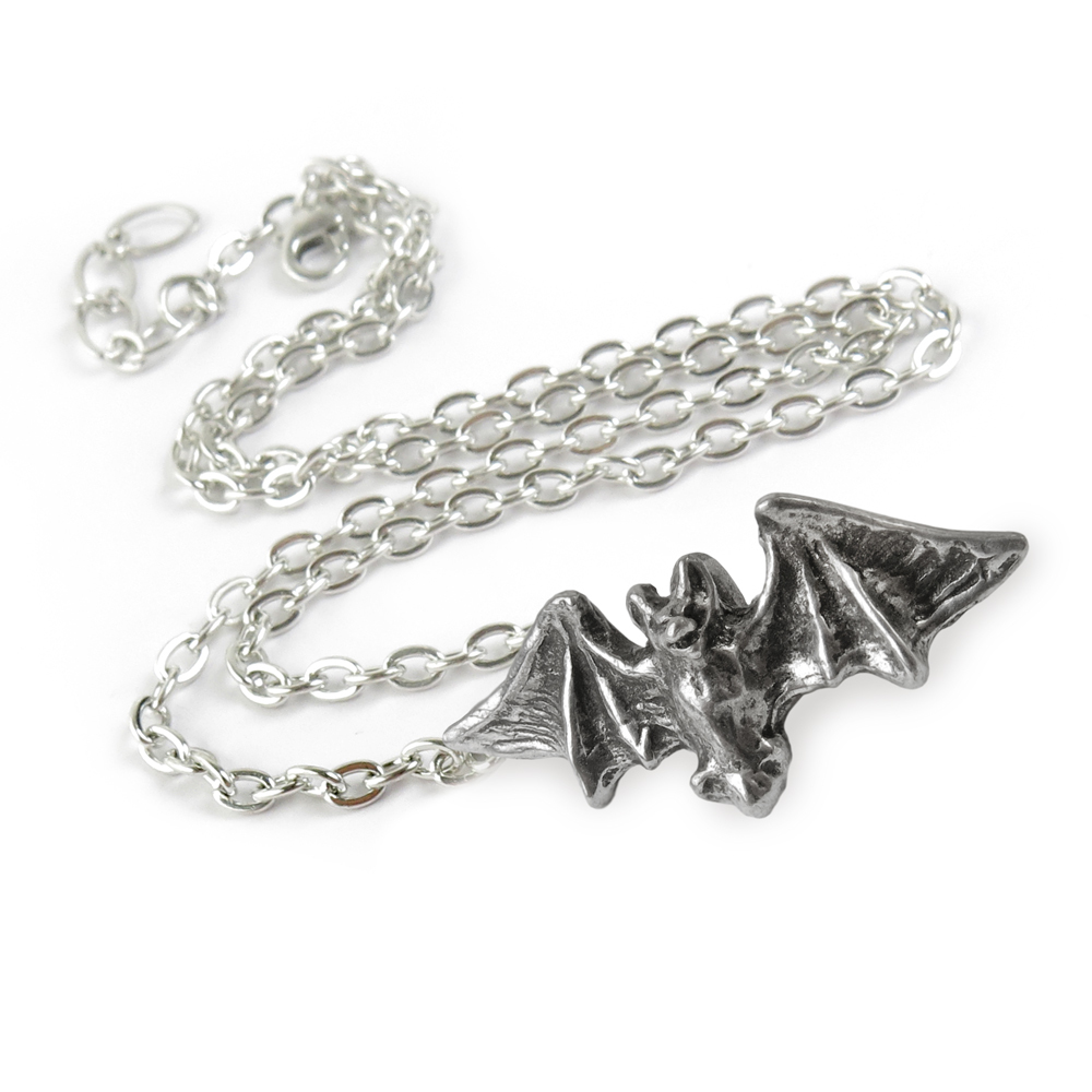 Сдержанная вещь с классической готической формой. Маленький кулон летучей мыши с вытянутыми крыльями. Вес и размеры (приблизительно): В: 12 мм (0,47 дюйма) W: 26 мм (1,02 дюйма) Д: 8 мм (0,31 дюйма) Вес 6 г (0,21 унц.) длина цепочки 460 мм