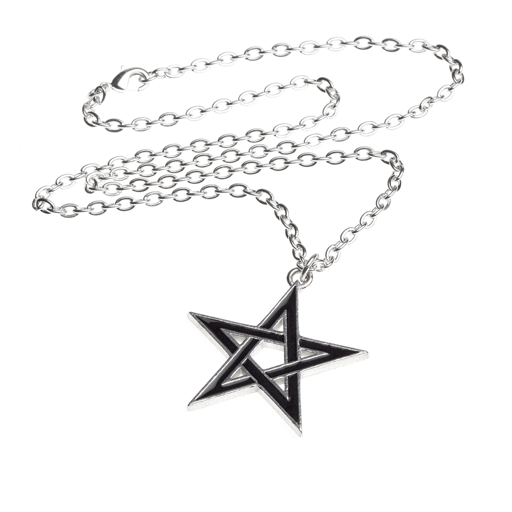 Сверхъестественные силы, дающие возможность носителю продолжить игру и сохранять контрол, даже вне жизни. Подвеска из аглийского пьютера, черной эмали, кулон пентаграмма. На цепочке 21"/48см. Вес и размеры (приблизительно): H: 44 мм (1,73 дюйма) W: 41 мм (1,61 дюйма) D: 4 мм (0,16 дюйма) Вес: 19 г (0,67 унций)