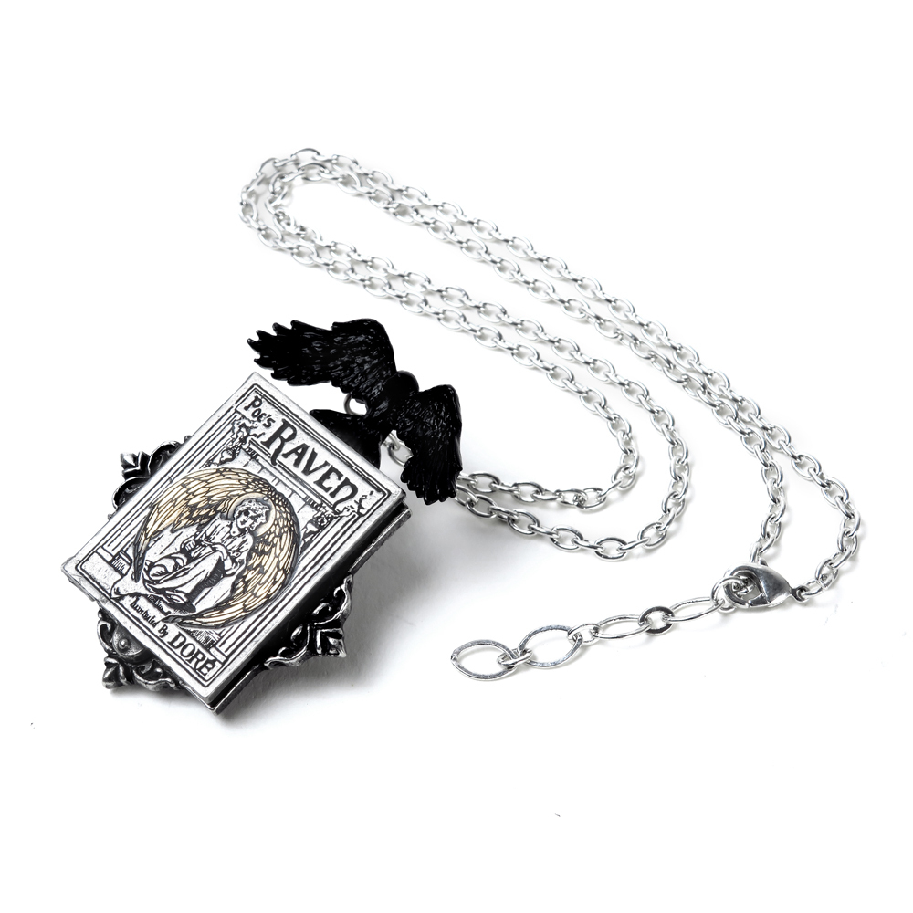 Медальон в форме обложки первого издания книги Эдгара Аллана По "Ворон", дополнена черным вороном. Обратите вашу любовь к поэзии "По". Медальон из пьютера, имитирующий оригинальную обложку книги "Ворон По", с декоративным обрамлением и черным вороном. Книга открывается, а с внутренней стороны выгравированы отрывки из стихотворения, рамка вмещаем фотографию размером 22 х 30 мм и закрывается с помощью магнита. На цепочке 21" (53 см). Ожерелье на цепочке 20" (50 см). Вес и размеры (приблизительно): H: 60 мм (2,36 дюйма) W: 44 мм (1,73 дюйма) D: 10 мм (0,39 дюйма) Вес: 54 г (1,90 унции)
