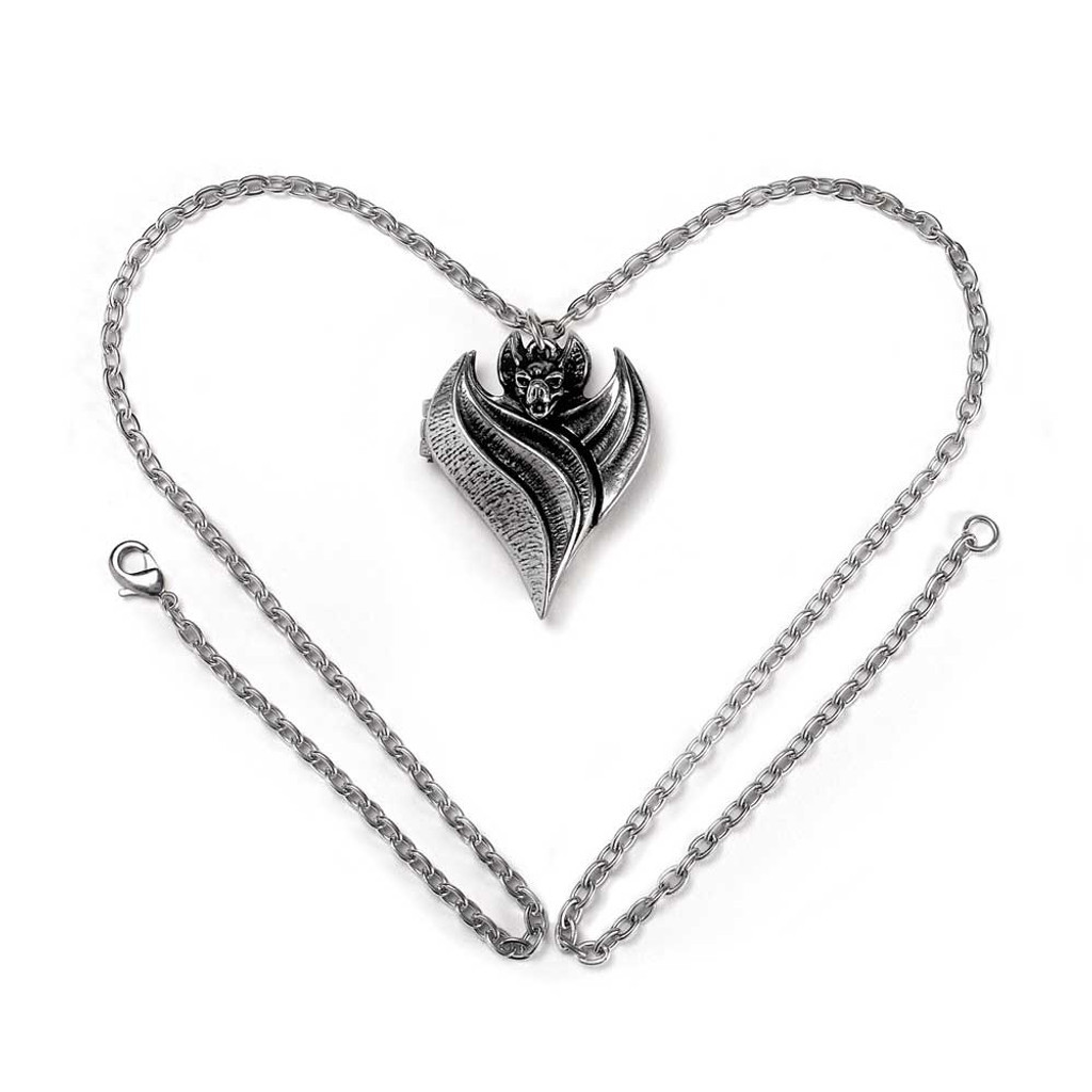 МЕДАЛЬОН «ТЕМНОЕ СЕРДЦЕ» (P949). «Моя темная любовь»; тайное свидетельство об опасном и вероломном поклоннике - для хранения внутри подобия вашего ревенанта. Прекрасная на ощупь вещь, которая добавит нотку тьмы любому наряду! Медальон в виде летучей мыши, образующей форму сердца. Аккуратно приподнимите крыло, чтобы открыть тайное место для близкого человека. За крылом открывается надпись «Mon Sombre» Amour. - Моя темная любовь. Размер (приблизительно): На цепочке длиной 21 дюйм (53 см). Вес и размеры (приблизительно): H: 40 мм W: 32 мм D: 10 мм Вес: 35 г. Упаковано в фирменный пакет Alchemy, включая гарантию Alchemy и инструкции по уходу. Разработаны и изготовлены вручную в Англии из тонкого английского пьютера.