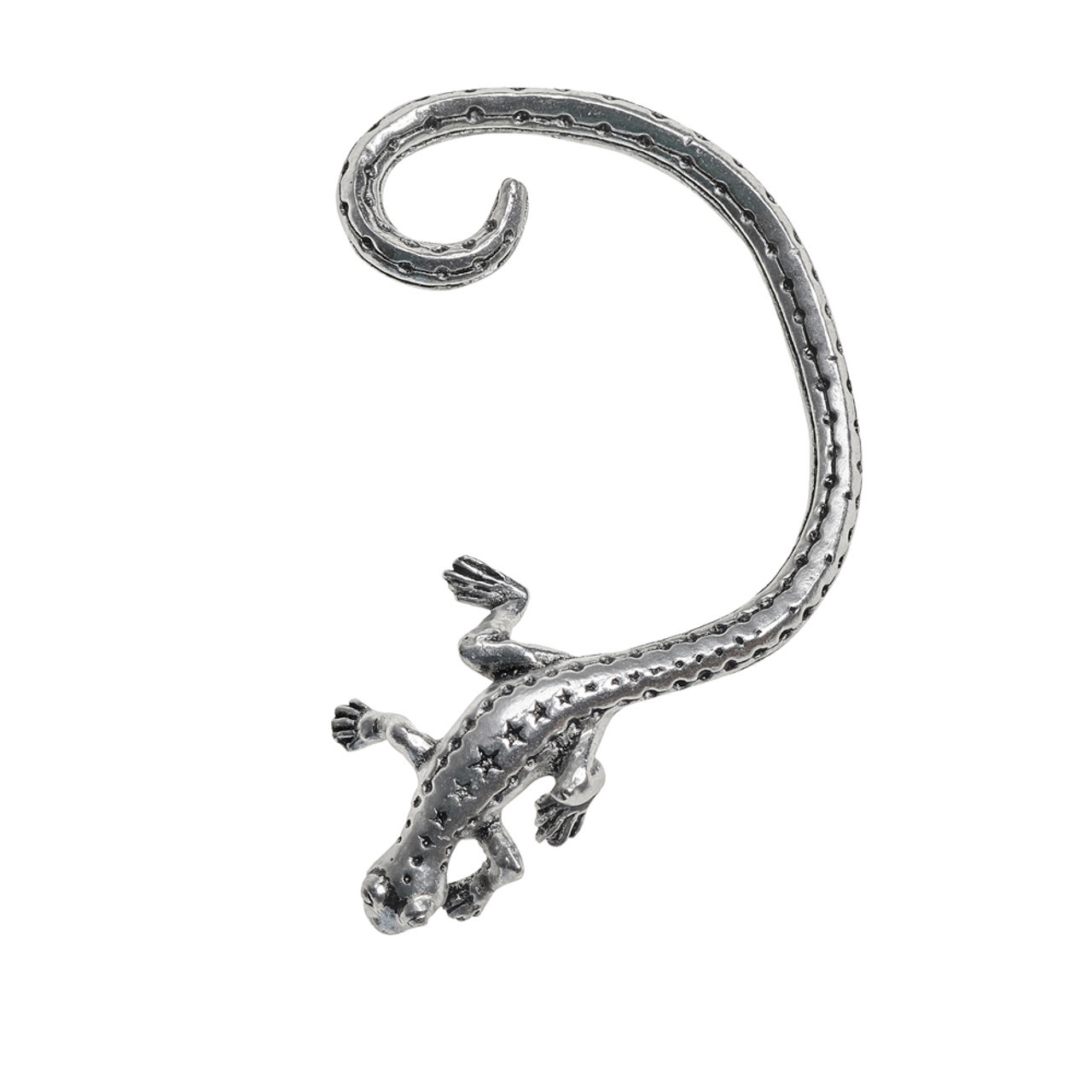 Серьга Кафф Огненная ящерица - это не просто украшение, это произведение искусства. Она выполнена в серебристом цвете и украшена изображением саламандры - символа алхимии. Это делает ее не только стильным аксессуаром, но и интересным предметом для коллекционирования.