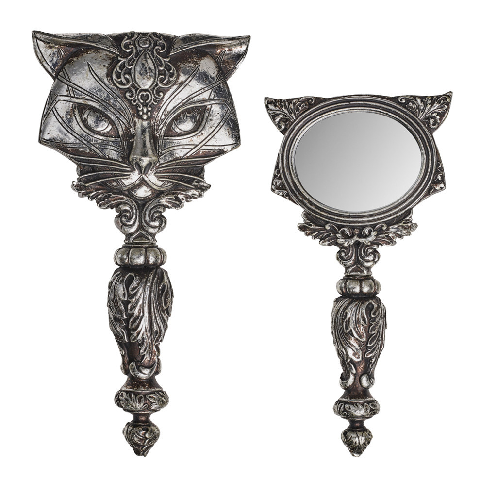 Вглядывайтесь в стекло достаточно долго, и вы узнаете кошачьи пророчества Айлуроса, духа очага храма Амуна. Ручное зеркало из литой смолы; ручная роспись и отделка. Приблизительные размеры: Ширина 4,61 Высота 8,66 Глубина 1,18. Происхождение: Разработано в Англии, произведено в Китае. Материалы: Смола, Зеркало.