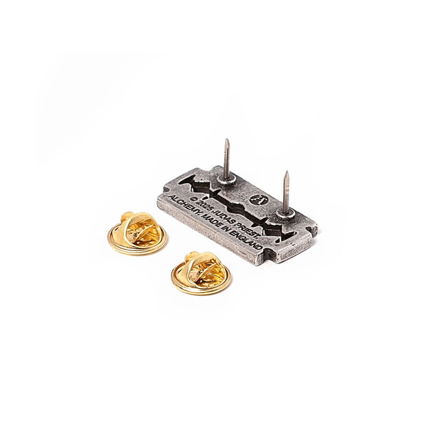 Отдайте дань уважения наследию Judas Priest с помощью этого эффектного значка в виде лезвия бритвы. Острая дань уважения богам метала.